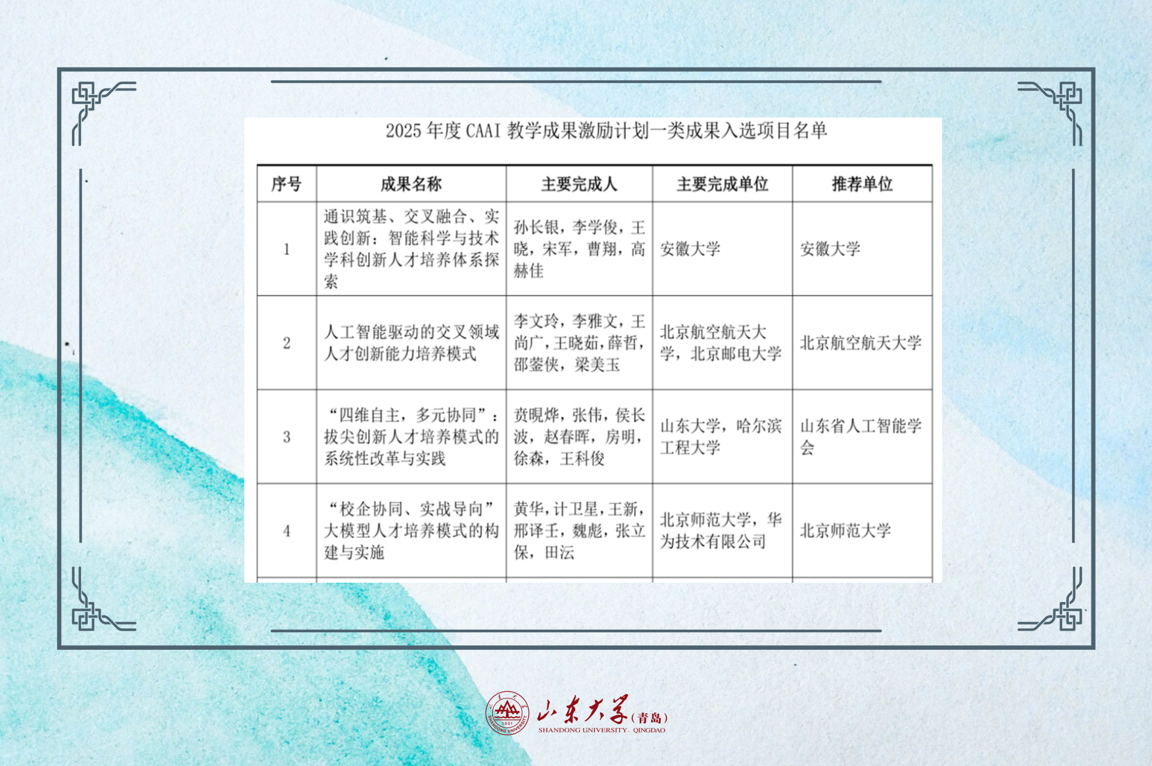 贲晛烨教授团队成果入选2025年度CAAI教学成果激励计划一类成果