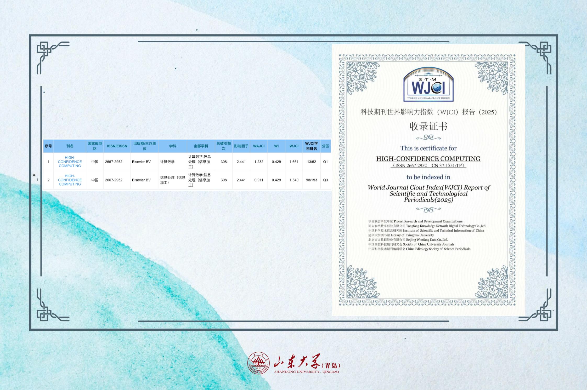 《高置信计算(英文)》再次入选《科技期刊世界影响力指数报告》