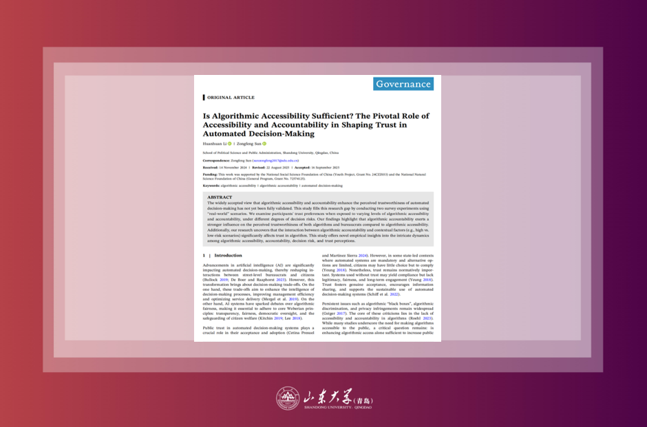 李欢欢助理研究员与孙宗锋教授在公共管理国际期刊Governance发表学 ...