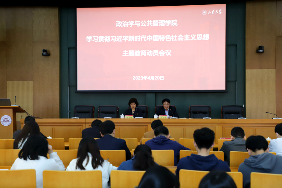 4月20日,政治学与公共管理学院召开学习贯彻习近平新时代中国特色社会主义思想主题教育动员会。学院党委书记盖玉强主持会议并作动员讲话,学校第十巡回指导组组长、青岛校区党工委组织宣传统战部部长刘竞虹作指导讲话。