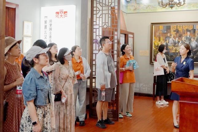 在培训期间,校区专门组织新教工们参观了“山东大学‘双一流’建设成就展”“山东大学校史馆”“师者如兰-山东大学弘扬教育家精神主题美术作品展”“追光—臧克家纪念馆”“科学巨星 大师风范—纪念潘承洞先生诞辰90周年专题展”,并组织新教工们探寻山大文脉。新教工们一路走过老舍、赵太侔、华岗等先辈的故居,走进山大人最初学习与奋斗的楼宇,对山东大学的辉煌历程与深厚底蕴有了更深刻的认识,进一步激励大家自觉担负起为国育贤的使命担当。培训间隙,青岛校区还组织了新聘机关工作人员座谈交流会,以老带新,勉励机关新聘干部提高业务能力、创新服务手段、提升服务质量,以精细化管理彰显机关新作风。