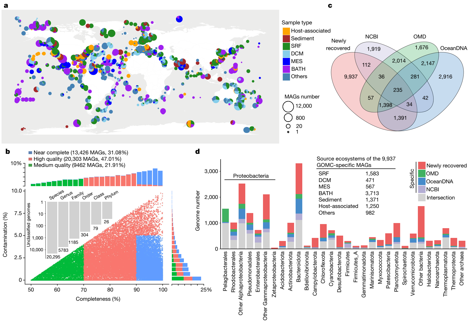 研究团队对目前已公开的近240 Tb海洋微生物宏基因组数据进行重分析,构建了包含超过4.31万个海洋微生物基因组和24.58亿条基因序列的大型数据库,深度揭示了海洋微生物的物种多样性,并成功发现多种PET塑料降解酶、新型CRISPR-Cas系统和高活性抗菌肽。研究成果不仅为海洋微生物的演化、环境适应性及生态学研究提供了前所未有的机遇,同时为海洋微生物基因资源的开发提供了实践案例,将极大地推动海洋微生物资源在相关产业的应用发展。