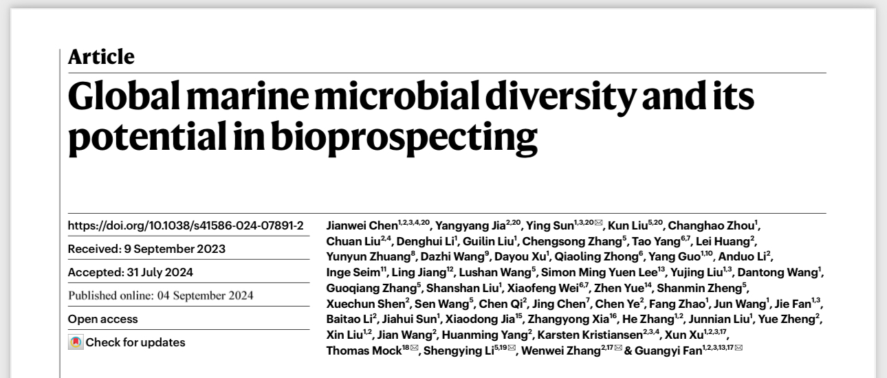 9月4日,国际顶级期刊《自然》(Nature)在线发表中外科学家的合作成果“Global marine microbial diversity and its potential in bioprospecting”。该成果建立了全球最大的海洋微生物组数据库,从中发掘塑料降解酶、基因编辑工具、抗菌肽等重要基因资源。山东大学微生物技术国家重点实验室教授李盛英为文章共同通讯作者,助理研究员刘琨为文章共同第一作者。