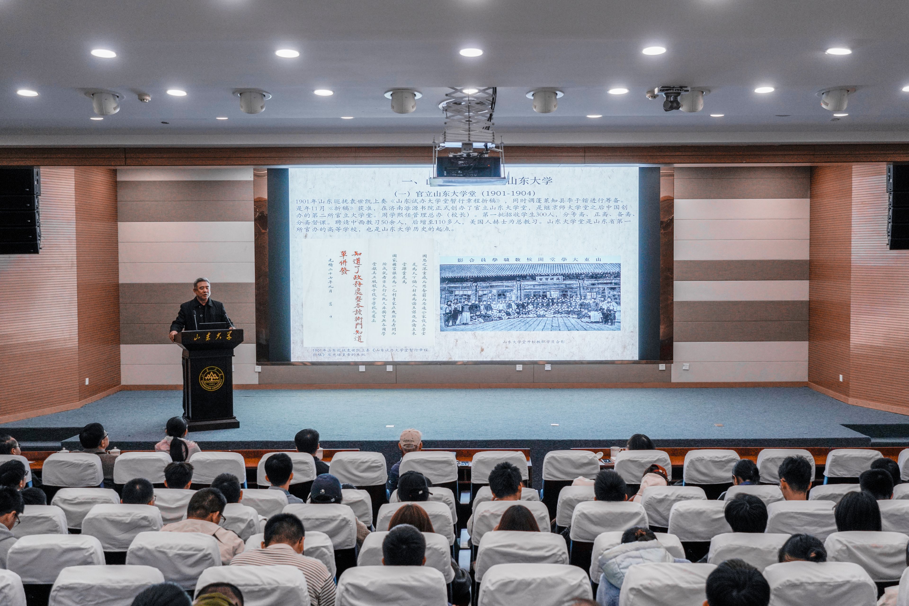 10月19日下午,中国海洋大学原校史研究室主任、研究馆员杨洪勋受邀做客“鳌山讲坛”暨“山大博物讲堂”,作题为“山大与青岛:名校与名城的琴瑟和鸣”的专题报告。讲座由青岛校区党工委组织宣传统战部、山东大学博物馆(青岛)联合举办,青岛校区党工委组织宣传统战部部长王景瑞,博物馆副馆长肖贵田,校区各教学科研单位师生代表参加报告会。