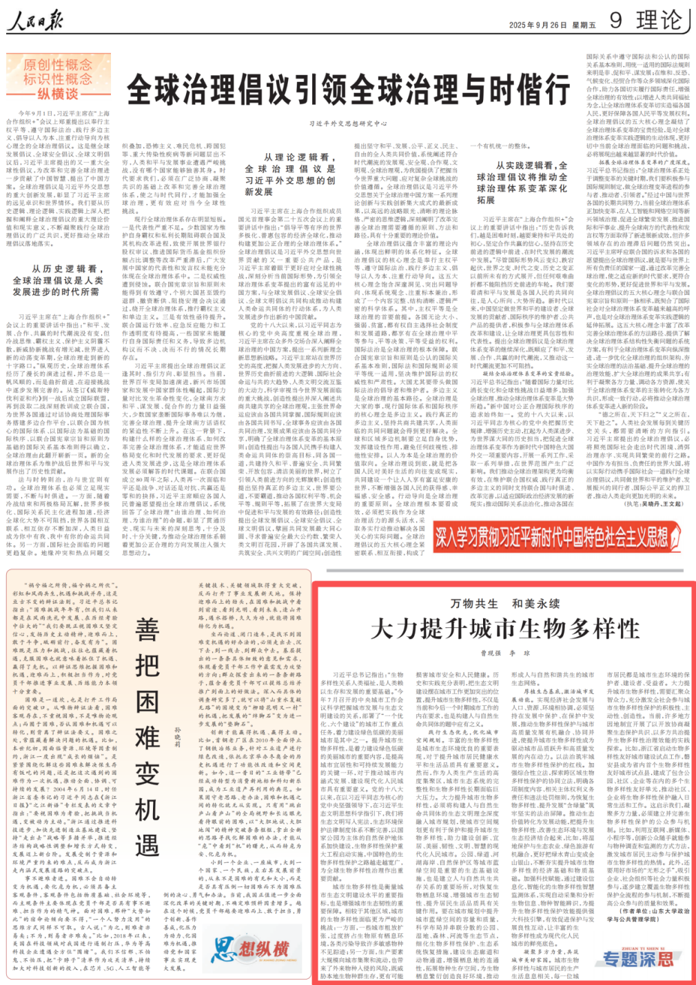 近日,山东大学政治学与公共管理学院曹现强教授团队在《人民日报》发表题为《大力提升城市生物多样性》的理论文章。文章指出,提升城市生物多样性,是着力建设绿色低碳的美丽城市的重要内容,是提高城市宜居性和可持续发展能力的关键一环,对于推动城市内涵式发展、建设现代化人民城市具有重要意义。全文如下: