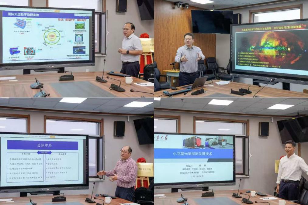 随后进行的融合发展研讨会由国际创新转化学院院长韩圣浩,空间科学与技术学院院长、空间科学研究院执行院长陈耀共同主持。黄性涛、陈耀、前沿交叉科学青岛研究院副院长杨驰、青年教师代表杨林分别围绕粒子大数据处理与软件技术、新一代宇宙空间X射线探测器、粒子探测技术、小卫星光学探测等前沿课题作了专题报告。与会人员结合院士工作站建设,就推进天文与空间科学、粒子科学与技术交叉融合发展进行了深入交流研讨。