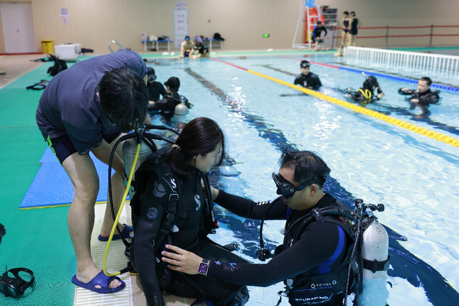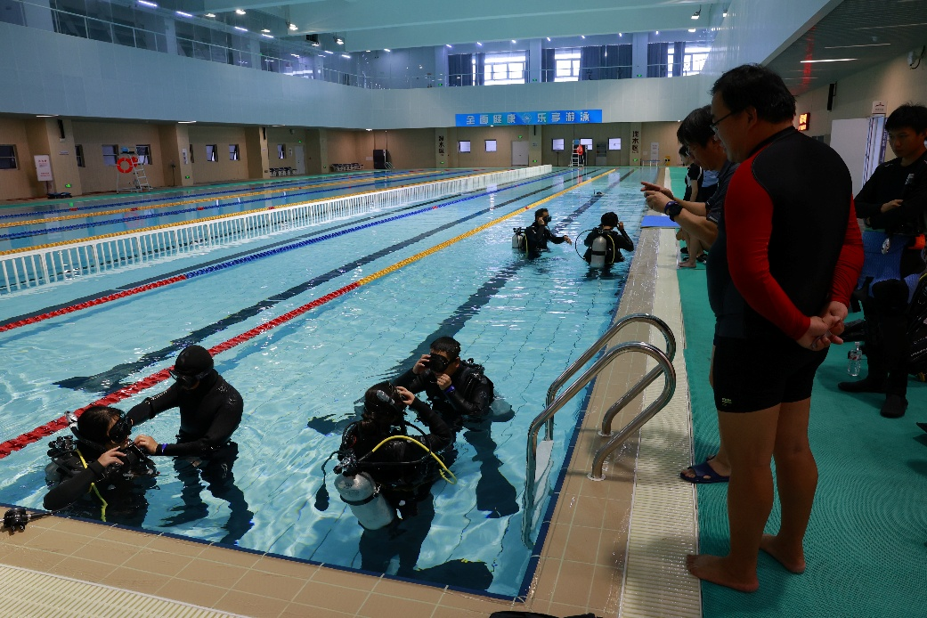 此次潜水教学是山东大学海洋考古中心举办的第二次海洋考古潜水教学活动。现场教学工作在山东大学体育馆组织实施,高标准的游泳馆和全套新式潜水装备为课程教学提供了有力保障。