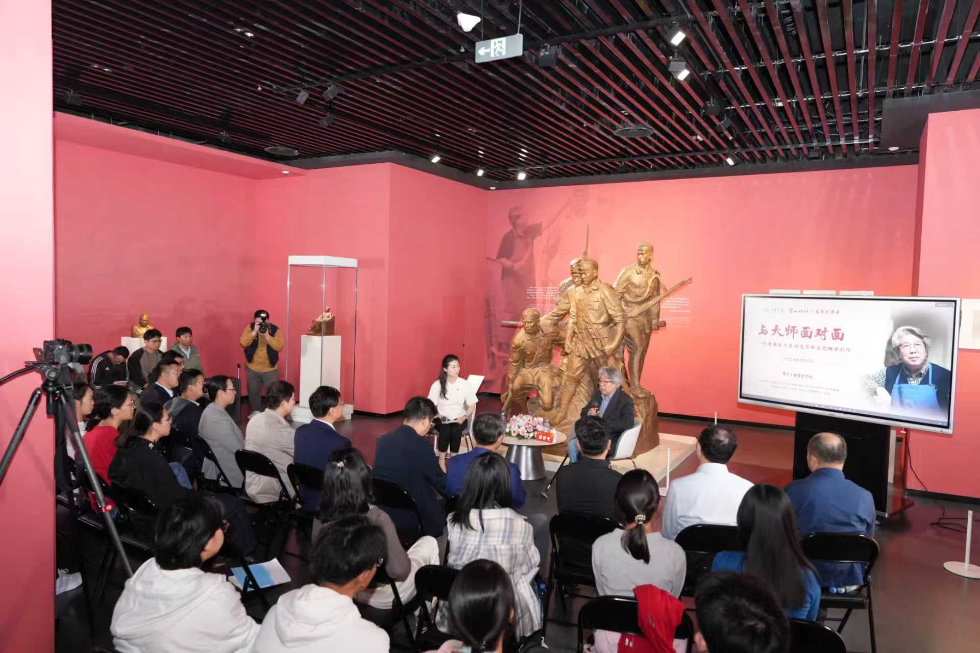 活动中,曹春生先生结合自身艺术创作与求学经历,深情回顾了自己如何走上艺术道路,分享了刘开渠、王临乙等恩师对其艺术理念与教育生涯的深刻影响,讲述了创作毛主席、周总理等领袖塑像背后的历史细节与初心使命。在谈及《狼牙山五壮士》等革命主题雕塑时,曹先生结合今年中国人民抗日战争暨世界反法西斯战争胜利80周年的时代背景,传达了艺术创作不仅是艺术表达,更是铭记历史、传承民族精神的载体。在先生的娓娓道来中,大家感受到了家国情怀与文化自信。互动环节,曹春生先生与现场师生亲切交流,耐心解答,现场气氛温馨热烈。
