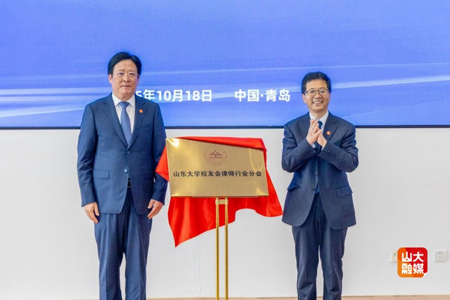 陈宏伟与刘玉国为山东大学校友会律师行业分会揭牌。大会审议并通过了校友会会员行为规范、校友会组成及领导人员名单等。新任执行会长、山东文康律师事务所创始合伙人殷启峰作为校友会代表发言。