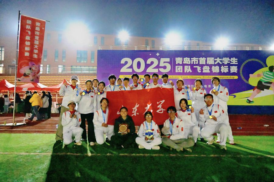 本届赛事由青岛高校体育协会主办,青岛电影学院承办,共有中国海洋大学、青岛科技大学等7所驻青高校队伍参赛。青岛校区飞盘队在领队张洪振、指导老师高之茵的带领下,一路奋勇拼搏,以实际行动诠释了“盘不落地、永不言弃”的飞盘精神,展现了山大学子敢闯敢创、昂扬向上的青春风采。