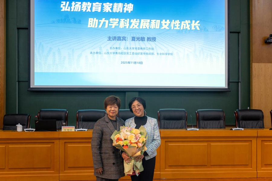 为大力培育弘扬践行教育家精神,11月18日,山东大学“师德大讲堂”暨青岛校区“鳌山讲坛”在青岛举行。生命科学学院夏光敏教授受邀作报告。党委教师工作部部长李雨嘉、生命科学学院党委书记王纪磊等出席活动。活动由青岛校区党工委组织宣传统战部部长王景瑞主持。