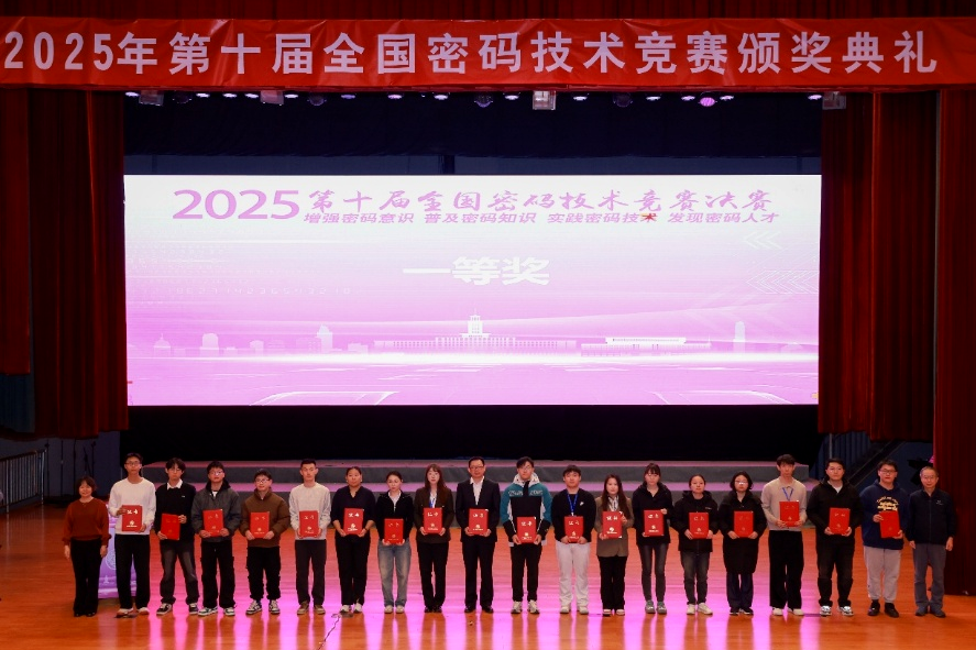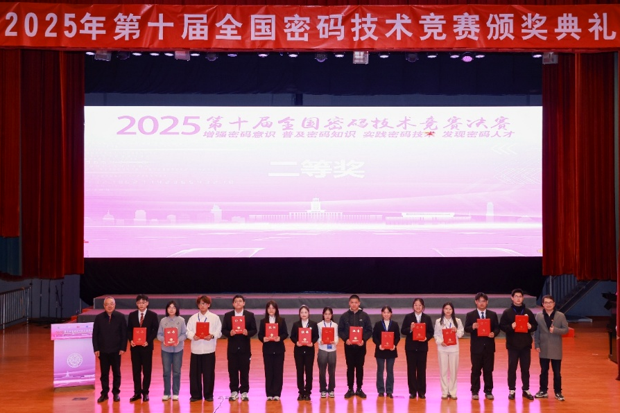 11月29日,2025年第十届全国密码技术竞赛颁奖仪式在南开大学举行。山东大学网络空间安全学院10支参赛队伍获得一等奖1项,二等奖1项,三等奖8项。