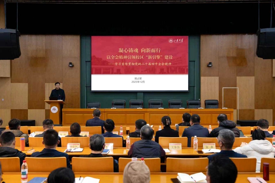 报告紧紧围绕党的二十届四中全会的重大意义、核心要义和精神实质,结合“十五五”时期发展面临的形势任务,和山东大学“双一流”建设、青岛校区“新引擎”定位的实际,进行了解读阐释。邢占军表示,青岛校区各单位要深入学习领会习近平总书记重要讲话和党的二十届四中全会精神,准确把握学校党委的战略部署,深入落实立德树人根本任务,持续推进校区综合改革,一体推进教育科技人才发展,切实把学习成果转化为推动校区高质量发展的实际成效,在“十五五” 时期持续激发创新活力、夯实发展根基,为学校加快建设担当民族复兴大任的世界一流大学作出新的更大贡献。