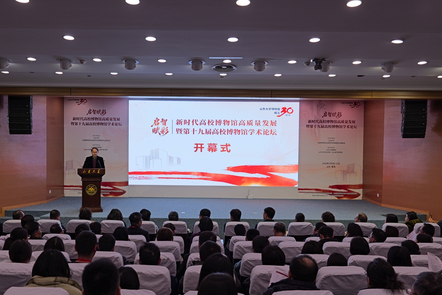 1月10日,在山东大学博物馆成立30周年之际,由山东大学、中国博物馆协会高等学校博物馆专业委员主办的“启智赋彩:新时代高校博物馆高质量发展暨第十九届高校博物馆学术论坛”在山东大学青岛校区博物馆开幕。中国博物馆协会理事长关强、山东大学党委副书记李向阳出席会议并致辞。