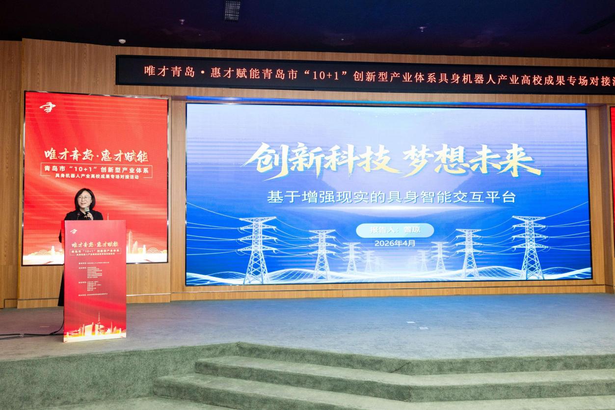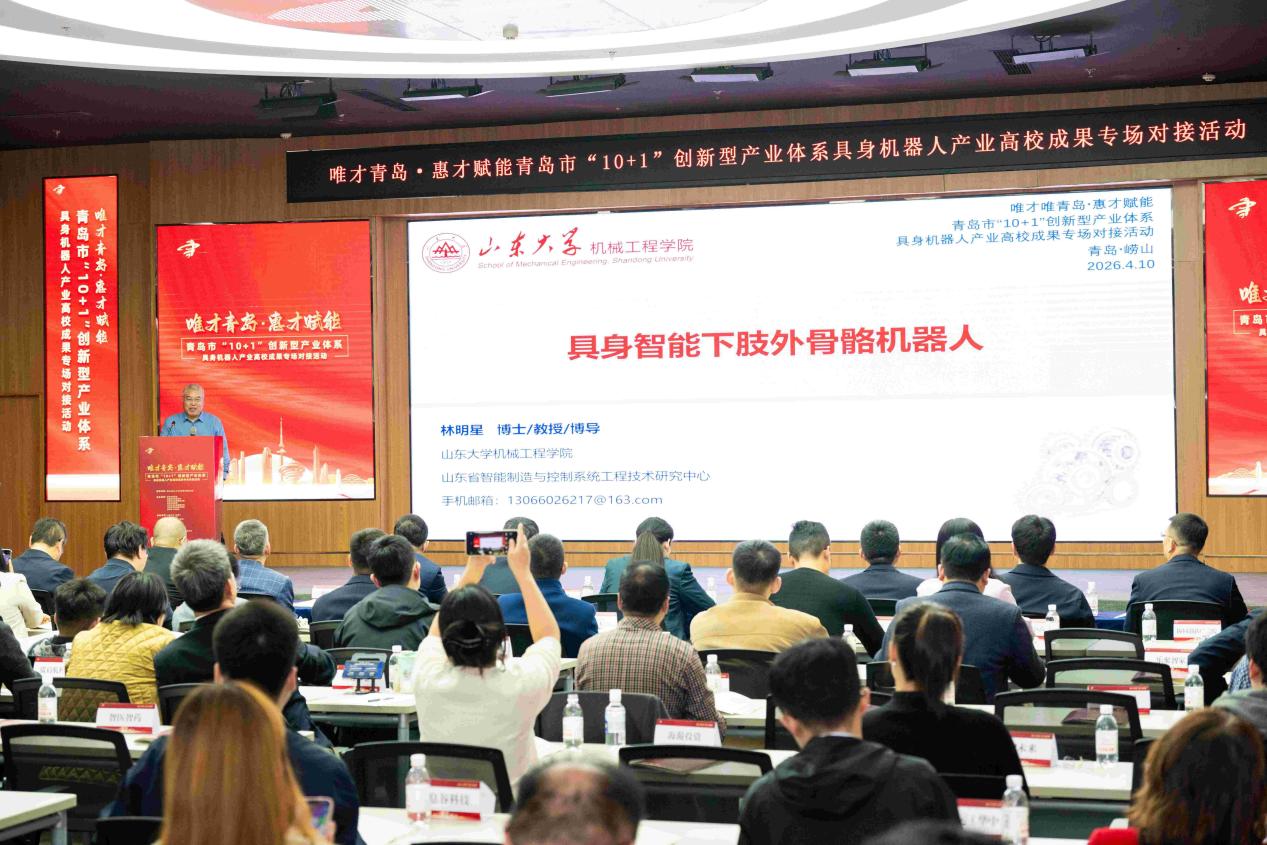 为统筹推进教育科技人才体制机制一体改革,推动“四链”深度融合,有效服务青岛市“10+1”创新型产业体系建设,4月10日下午,“唯才青岛·惠才赋能”第24期暨青岛市“10+1”创新型产业体系之具身智能机器人产业高校成果专场对接活动成功举办。活动由市委人才工作领导小组办公室、市教育局、市科技局、市工业和信息化局等政府单位与山东大学(青岛)、中国海洋大学、中国石油大学(华东)、青岛大学、青岛科技大学等驻青高校联合举办。