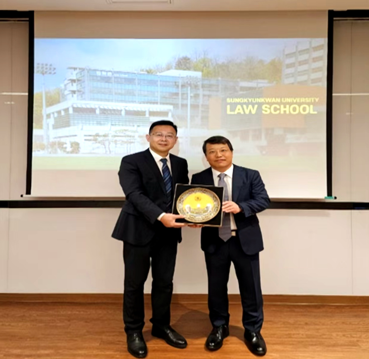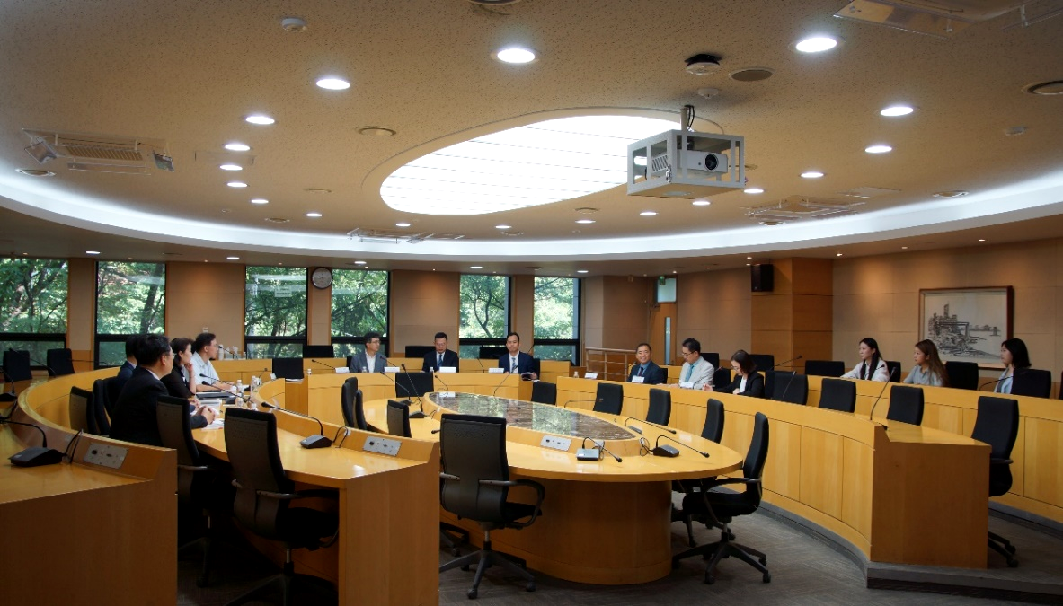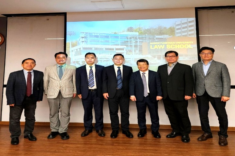 法学院代表团与成均馆大学法学院院长金日焕、副院长郑相铉、权澈等多位教授进行了热情友好的座谈交流。双方达成共识,将建立常态化合作机制,两院教学科研人员可担任对方客座讲学或研究人员,合作举办国际学术会议,开展暑期学校活动,加大两院学生交流互访力度。下一步将进一步拓展合作领域,扩大人员交流规模,共同培养优秀人才,加强产学研合作,在促进中韩法治发展上彰显担当。
