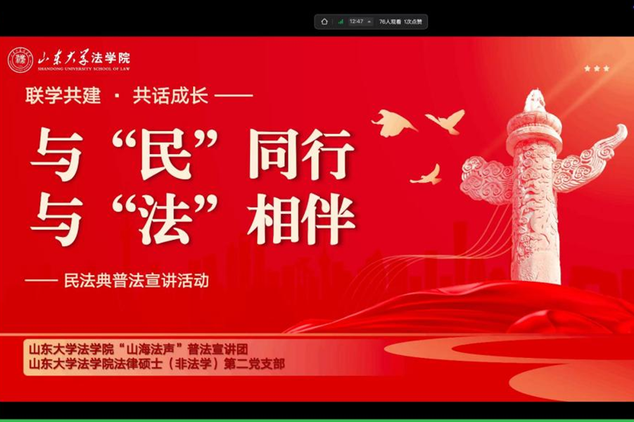 为进一步普及民法知识,弘扬法治精神,近日,法学院“山海法声”普法宣讲团开展“与‘民’同行·与‘法’相伴”民法典普法宣传活动。