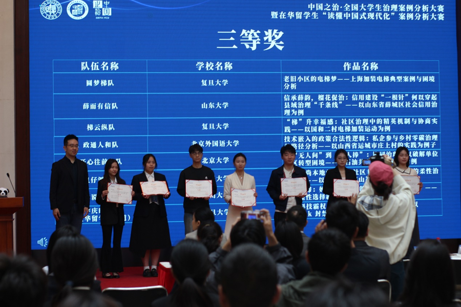 4月19日至20日,中国之治·全国大学生治理案例分析大赛暨在华留学生“读懂中国式现代化”案例分析大赛决赛在复旦大学举行。山东大学政治学与公共管理学院学生获三等奖1项、优胜奖2项。