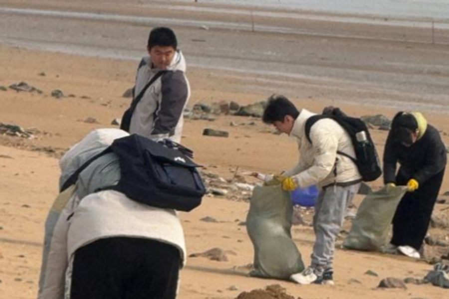 组织净滩,守护碧海。学院“生命沙洲”志愿服务团队于3月开展三次净滩活动,共103名志愿者参与,奔赴滨海公园清理塑料垃圾300余公斤。