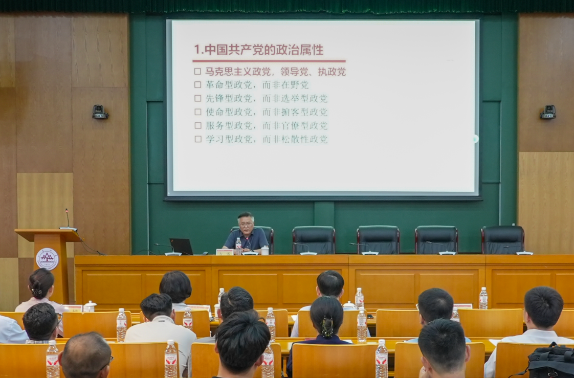 在“海归菁英大讲堂”环节,山东大学教授方雷以《中国共产党的政治品行》为题进行授课,从理论高度解析红色文化的时代价值。他对比中西方政党差异,从中国共产党的政治属性、政治立场、独特优势、伟大贡献、自我革命、治国理政等六个方面进行深刻解读,对党带领中国实现救国、兴国、富国、强国的伟大贡献进行详细阐述。