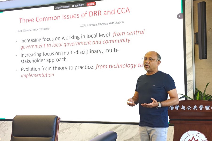 7月25日至27日,由山东大学政治学与公共管理学院主办的“全球灾害治理:理论前沿与科技应用”暑期学校在青岛校区顺利举行。本次暑期学校由日本庆应义塾大学教授、联合国亚太科学技术咨询小组(AP-STAG)联合主席Rajib Shaw担任主讲。课程采用线上与线下相结合的模式,吸引了来自政治学与公共管理学院、信息科学与工程学院、新闻传播学院、机械工程学院、软件学院、电气工程学院、商学院等多个学院的本科生选课。