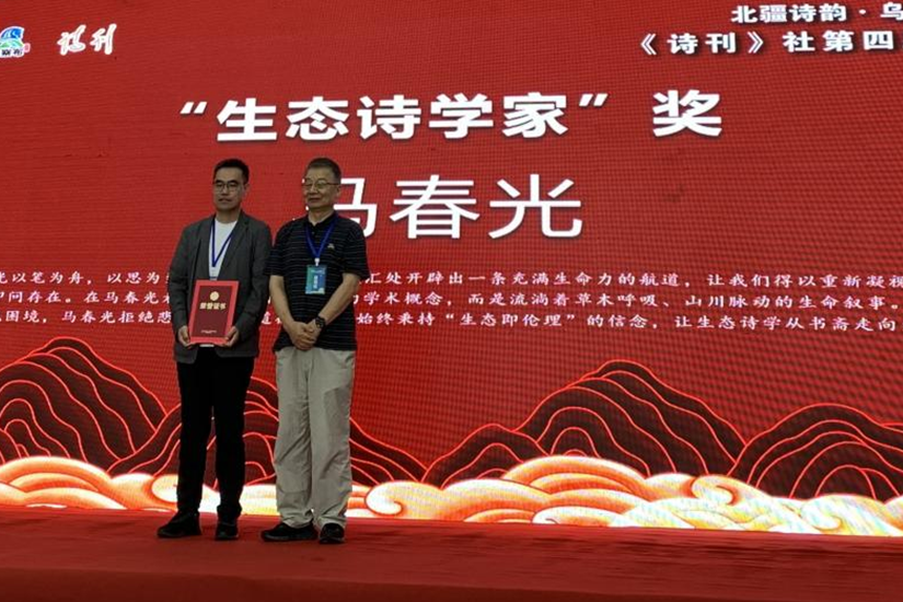 近日,山东大学人文艺术研究院马春光副教授荣膺《诗刊》社第四届自然诗会“生态诗学家”称号,《诗刊》原主编叶延滨为其颁奖。