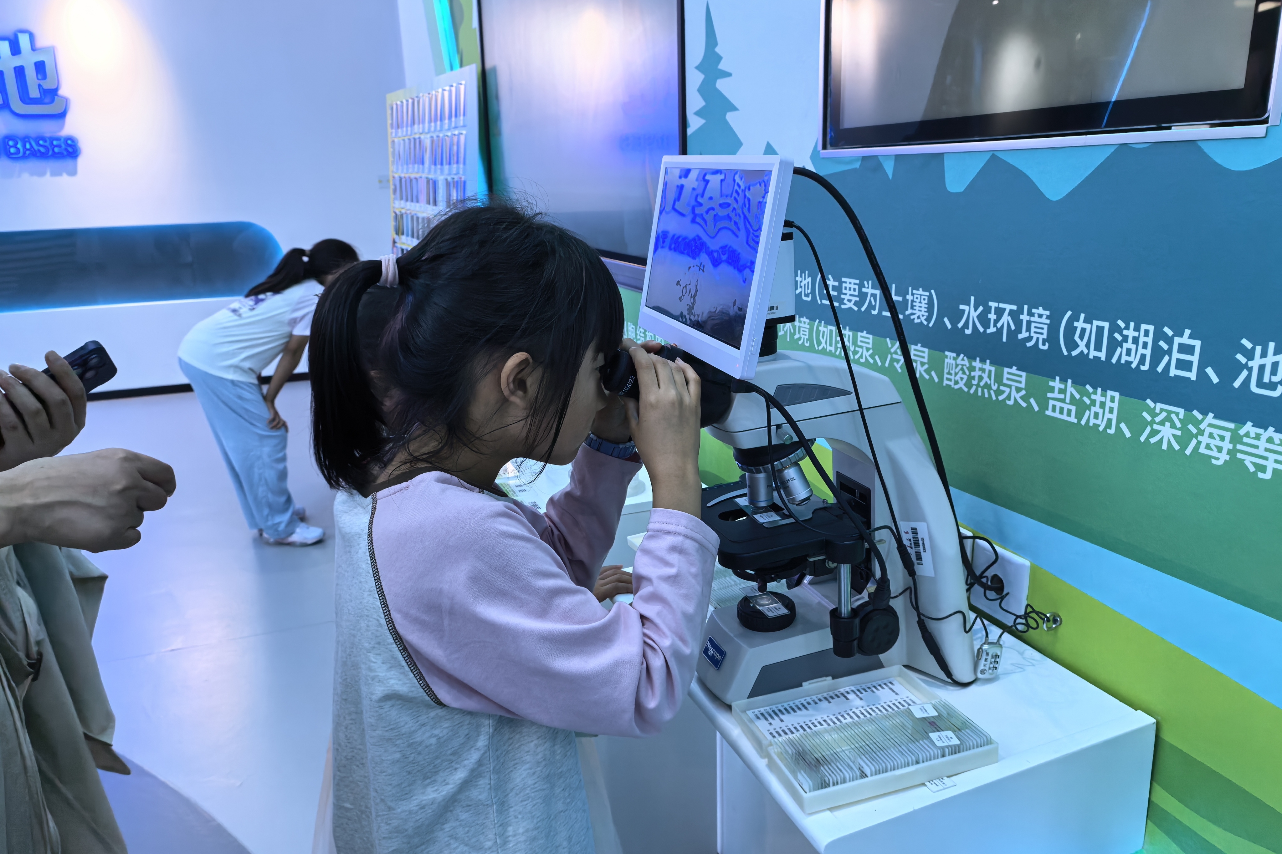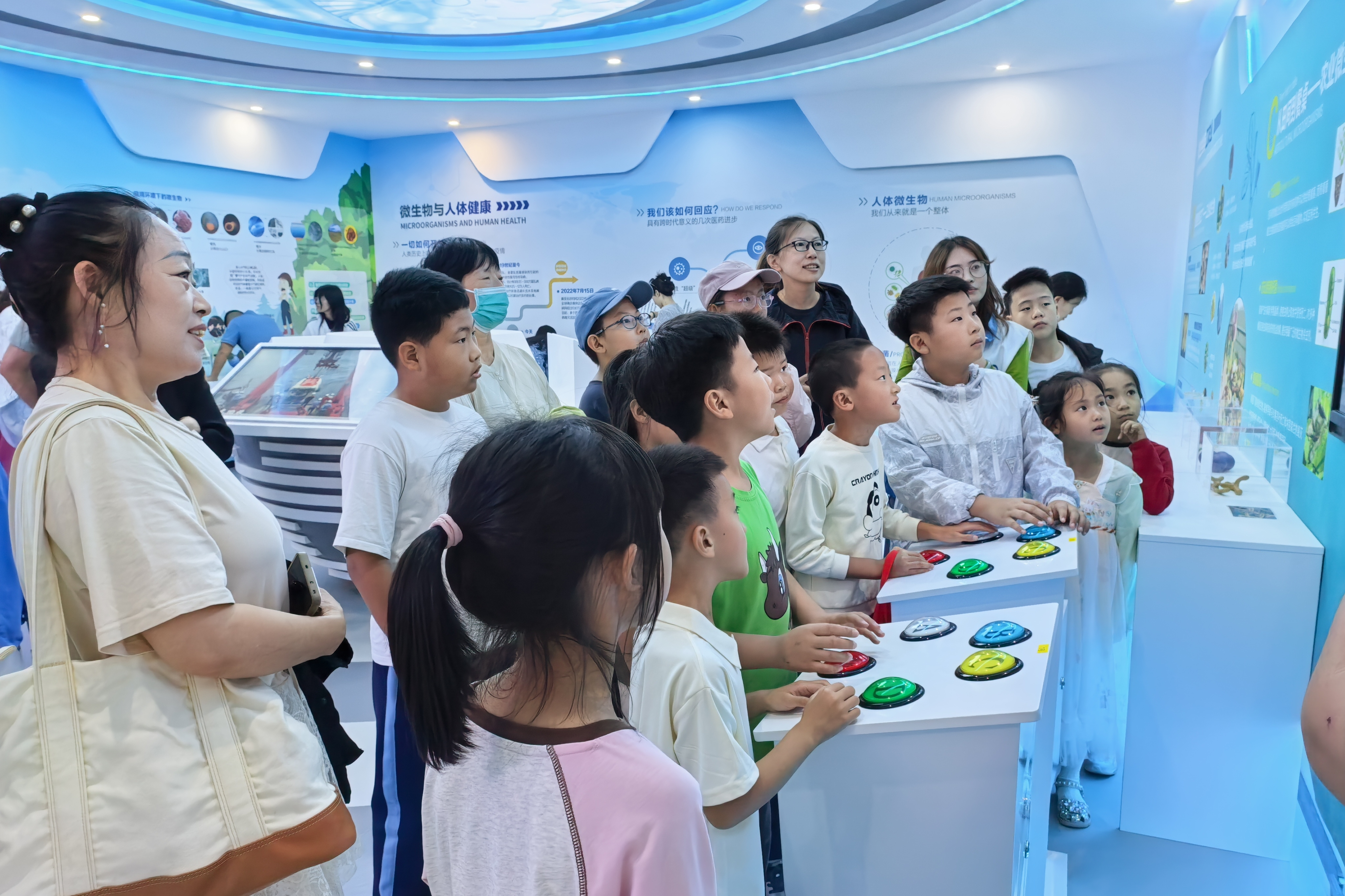 微生物改造技术全国重点实验室山东省科普教育基地从孩子们的兴趣点出发,设置了微生物知识图文展板、互动答题装置、显微镜观察、真菌标本等多种形式,强烈地激发了孩子们的好奇心,在寓教于乐的过程中,让孩子们见识了奇特的微生物。