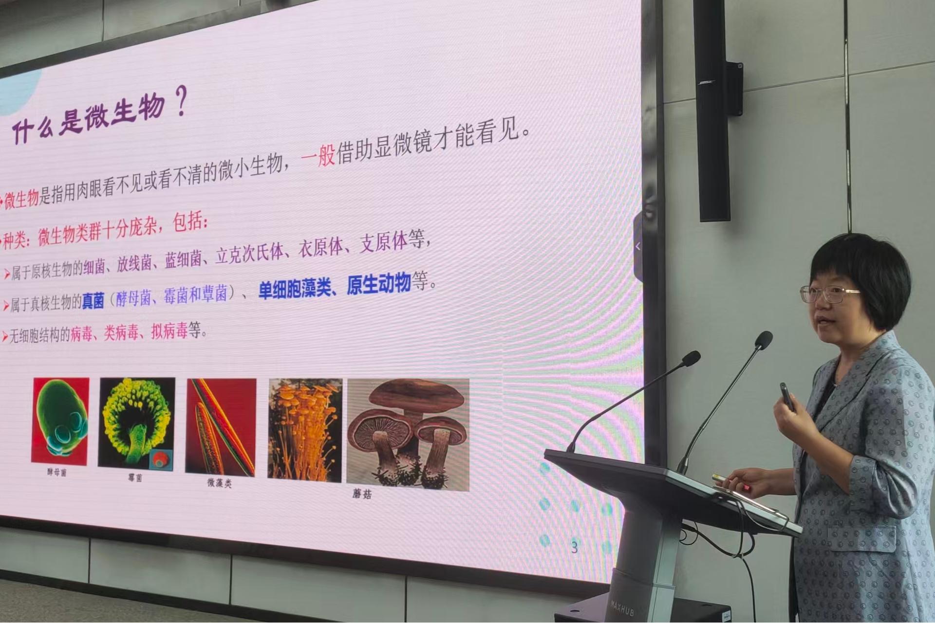 在科普报告大咖秀环节,微生物改造技术全国重点实验室副教授、“启梦微来”科技志愿服队科普专家庞昕以《奇妙的微生物》为主题,生动有趣地为孩子们讲解了什么是微生物、微生物的种类、微生物的分布以及微生物与人类的密切关系,丰富了孩子们对微生物世界的理解。