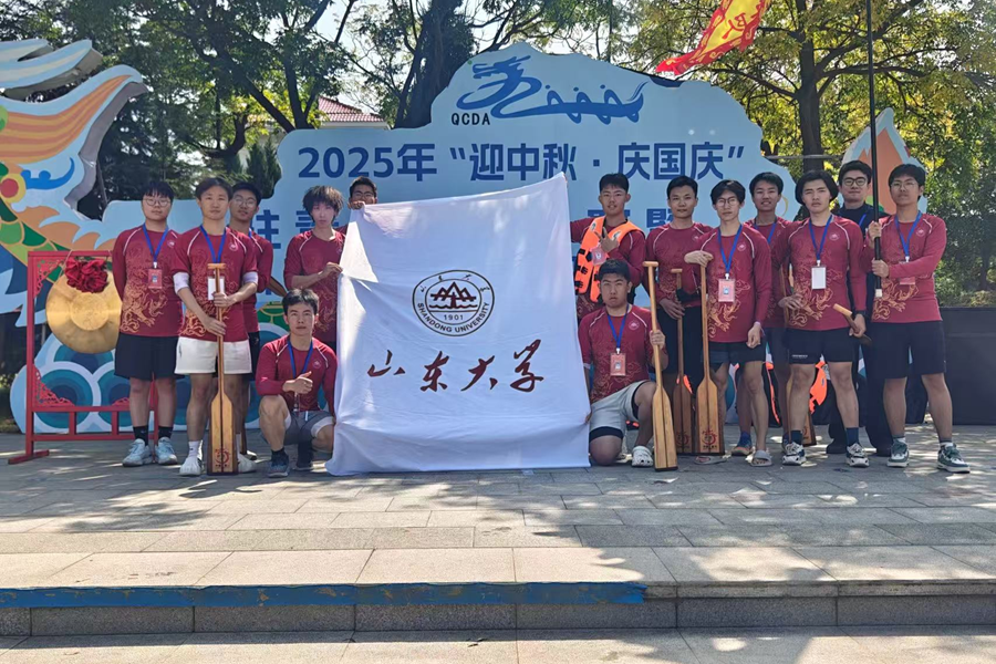 本次赛事设200米直道竞速项目,划分大学生男子甲组、乙组、丙组三大组别,共150名运动员参赛。比赛当天,葫芦巷主题公园内国庆氛围浓厚,赛道旁观众为各队伍助威。青岛校区龙舟队队员身着印有“山东大学”的队服,发令枪响后,按鼓手节奏划桨,在与其他高校专业队员的竞争中,全程保持稳定发挥,最终获甲组亚军。比赛中,队员遵守规则,尊重对手与裁判,展现良好的竞技素养。