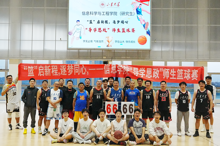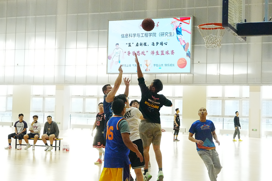为增进师生交流、营造温暖融洽的导学氛围,欢迎2025级新生加入信息学院大家庭,10月29日,信息学院在青岛校区体育馆举办2025年“导学思政·研新杯”师生篮球赛。学院党委书记李德春、副院长孙宝清与研究生导师、学院办公室教师代表组成教工队,与2025级研究生新生代表队同场竞技、挥汗角逐,以球会友、以赛传情,为新同学送上别样的入学欢迎礼。