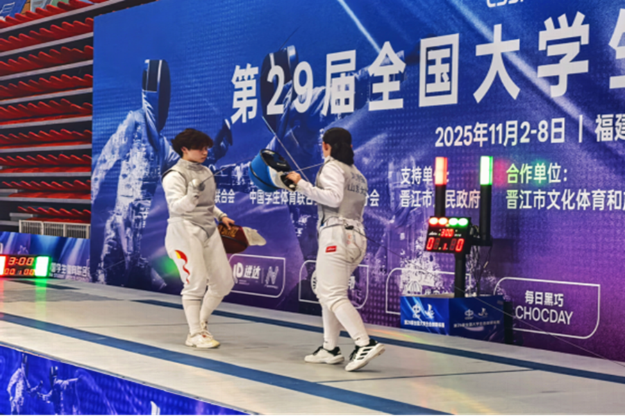 11月2日,第29届全国大学生击剑锦标赛在福州大学开赛。山东大学网络空间安全学院2024级本科生刘洢铱获甲组女子花剑季军。