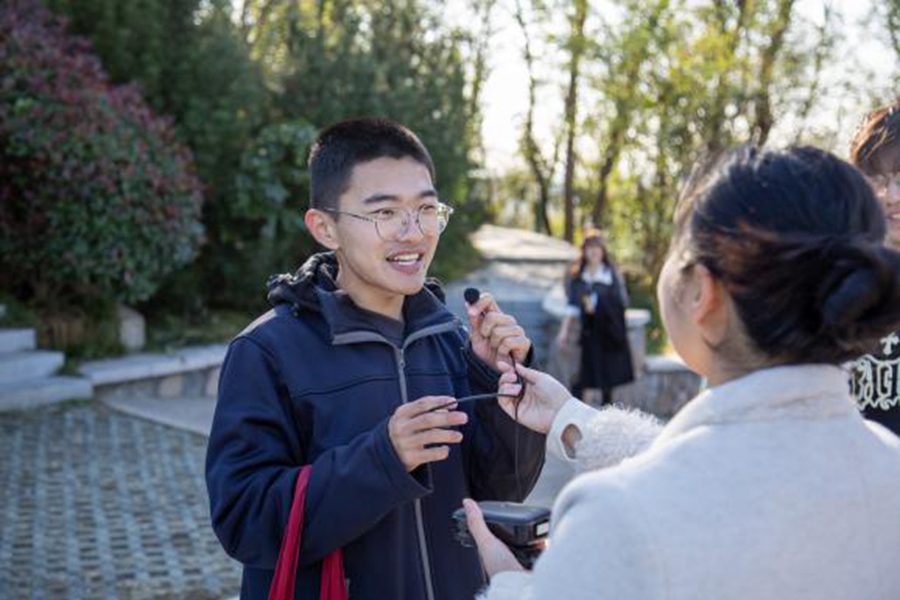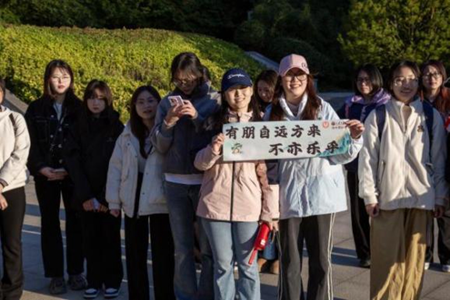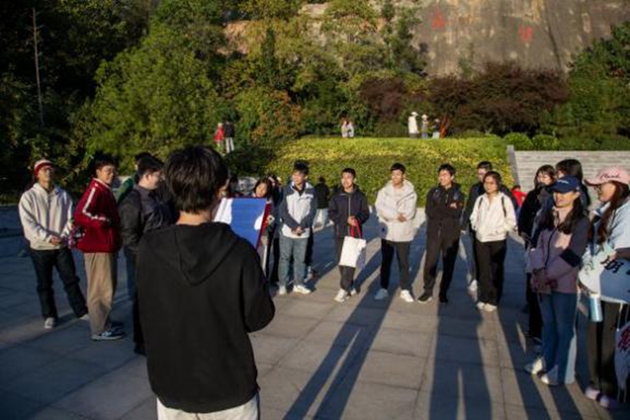 登顶之后,同学们围聚交流,分享一路走来的登山心得与感悟。计算机科学与技术学院2024级本科生梁浩楠表示:“此次在象耳山徒步,每一步都满载文化惊喜,诗词飞花令、论语答题让我重新领略了传统文化的独特魅力,也让登山有了别样的意义。”