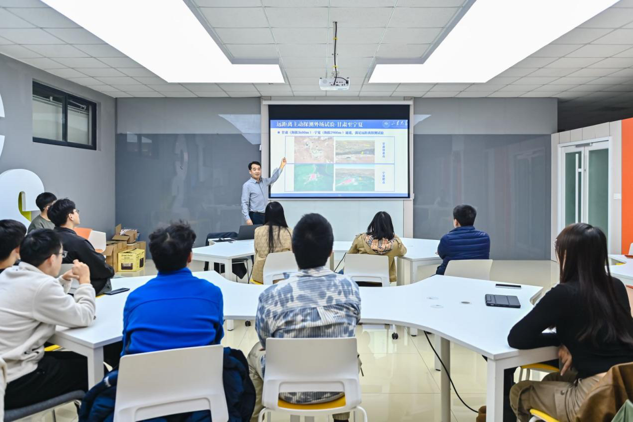 科研引路:点亮科创梦想之光。在“科研引路”环节,刘兆军结合自己的科研方向和前沿动态,为同学们详细介绍了当前光电领域的研究热点和发展趋势,让同学们对科学研究有了更清晰的认识。为了帮助同学们更好地开展科研工作,刘兆军还分享了一些科研方法和经验。他强调,科研工作需要严谨的态度、创新的思维和持之以恒的精神。在科研过程中,要善于发现问题、提出问题,并通过查阅文献、实验验证等方式解决问题。同时,要注重团队协作,共同攻克科研难题。他寄语同学们,“作为光电科创未来精英班的一员,希望大家能够珍惜机会,努力学习专业知识,积极参与科研项目,培养自己的创新能力和实践能力,为推动我国光电技术发展做出贡献。”