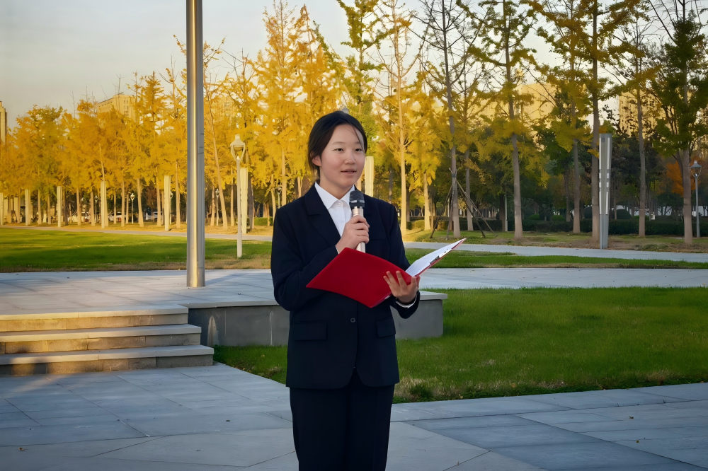 升旗仪式上,学院2025级本科新生徐子涵登台发言,她结合网络空间安全专业特色,分享了对二十届四中全会精神的理解。她表示,同学们要以全会提出的“高水平科技自立自强”目标要求为指引,扎实钻研网络攻防、数据安全等专业知识,在科研中攻克技术难关,在实践中锤炼过硬本领,用专业能力守护国家网络空间安全。