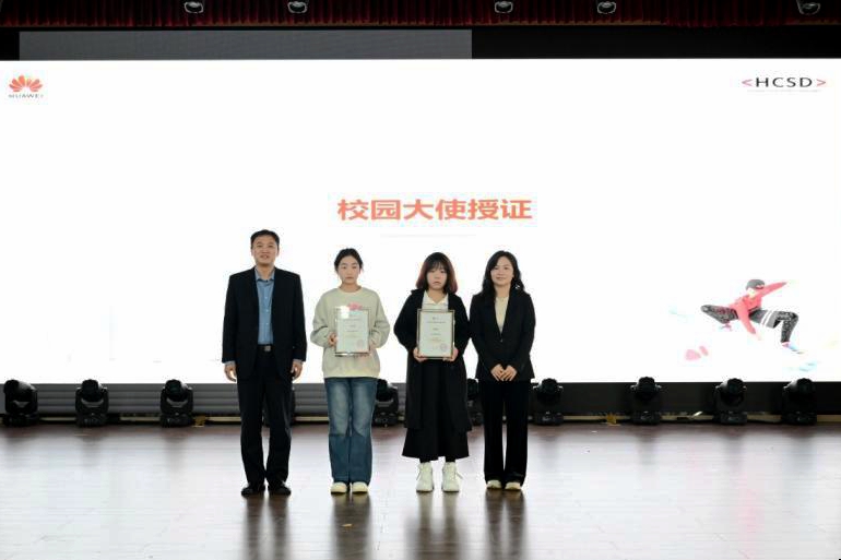 张四化在致辞中表示,山东大学与华为长期以来在科研合作、课程共建、人才培养等方面的深厚合作基础。他鼓励同学们珍惜此次学习机会,积极参与华为云提供的技术平台与赛事活动,将理论知识与产业实践相结合,成为具备创新能力和全球视野的高素质人才。罗静在致辞中表示,华为云HCSD高校公开课系列活动致力于打通从课堂到产业、从知识到能力的关键路径,助力高校学子在AI时代抢占先机。同时呼吁更多学子加入华为开发者生态,共同探索智能世界的无限可能。张四化与罗静共同为山东大学优秀学生代表颁发“HCSD校园大使”证书。