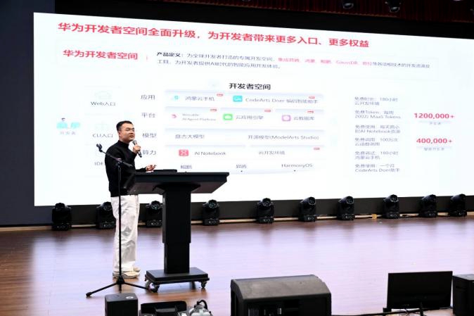 技术演讲环节,多位华为技术专家围绕AI竞赛生态、编程语言创新与开发平台赋能等议题展开深度分享。华为AI首席专家柳轩以《昇腾AI算法挑战赛,如何助力高校人才与智算产业衔接》为题,系统阐述了华为竞赛社区在连接高校人才与产业需求方面的核心价值。华为仓颉语言生态发展经理许亦然在《CodeArts+仓颉语言:驱动鸿蒙开发生态创新与繁荣》演讲中,揭秘了华为自主创新编程语言——仓颉的优秀实践。华为云DTSE开发者技术专家念擎以《华为开发者空间,助力AI智能应用开发》为主题,系统展示了开发者空间作为全球开发者专属平台的核心能力。