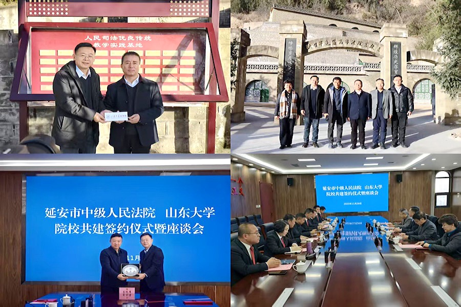 11月27日至28日,调研组赴陕甘宁边区高等法院旧址、陕甘宁边区审判史陈列馆、延安市中级人民法院,实地观摩珍贵史料,深刻体会“马锡五审判方式”等人民司法优良传统的精神内涵与时代价值。延安中院党组书记、院长刘群,副院长刘向林等陪同调研。法学院在陕甘宁边区高等法院旧址挂牌设立“人民司法优良传统教学实践基地”。法学院与延安市中级人民法院进行座谈交流,于向明与刘群签署院校合作框架协议,双方将充分利用延安红色资源,结合学校理论研究优势和法院司法实践能力,在理论研究、红色法治文化资源发掘、教育培训、实习就业等方面积极探索共建、合作模式。