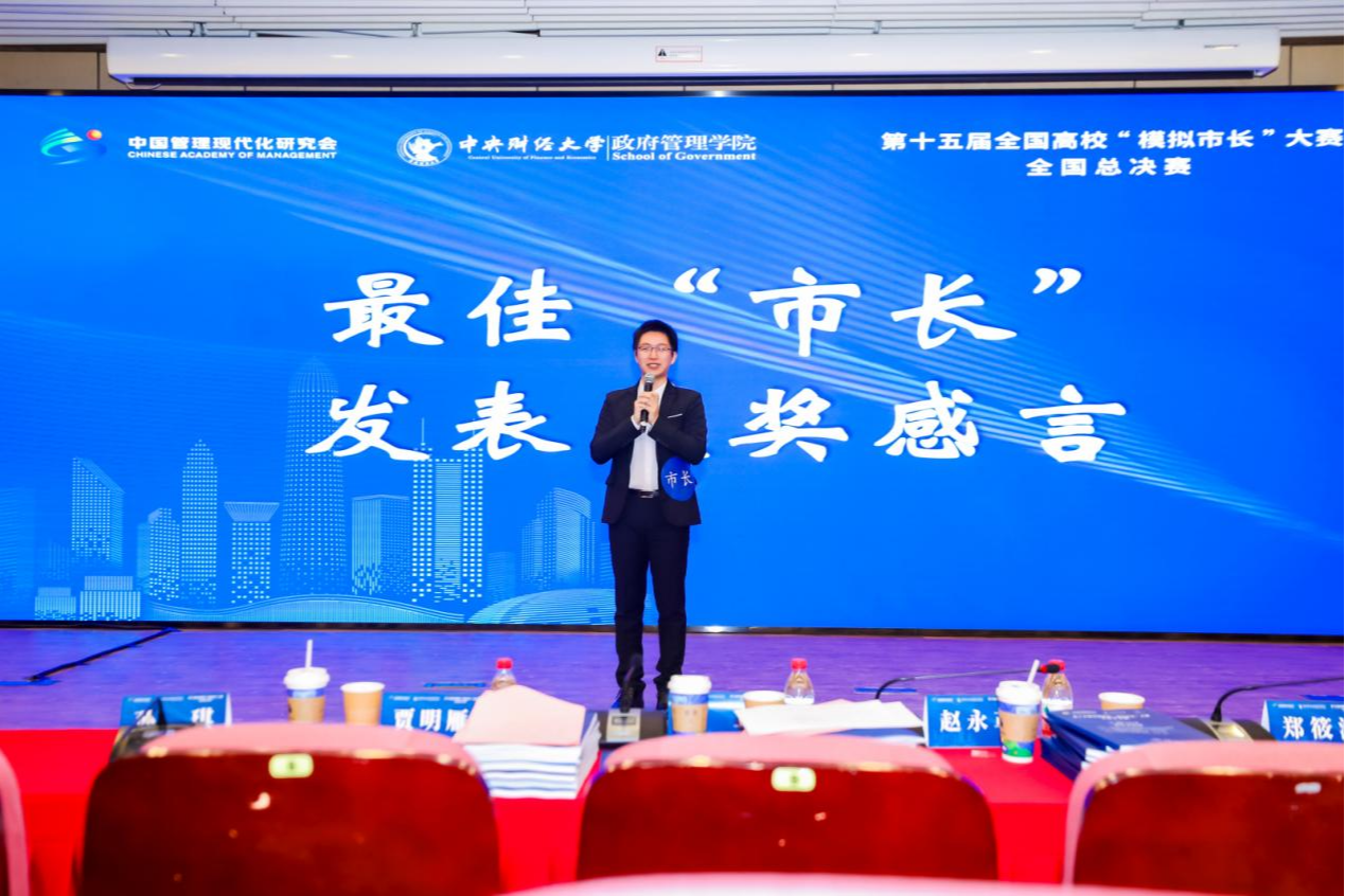 全国高校模拟市长大赛自2011年以来,至今已成功举办十五届,是政府管理领域具有创造性、学术性和影响力的典型赛事。大赛由中国管理现代化研究会政府战略与公共政策研究专业委员会、中央财经大学政府管理学院主办,中央财经大学“未来公务员之家”德育示范基地、中央财经大学公共管理研究会承办。