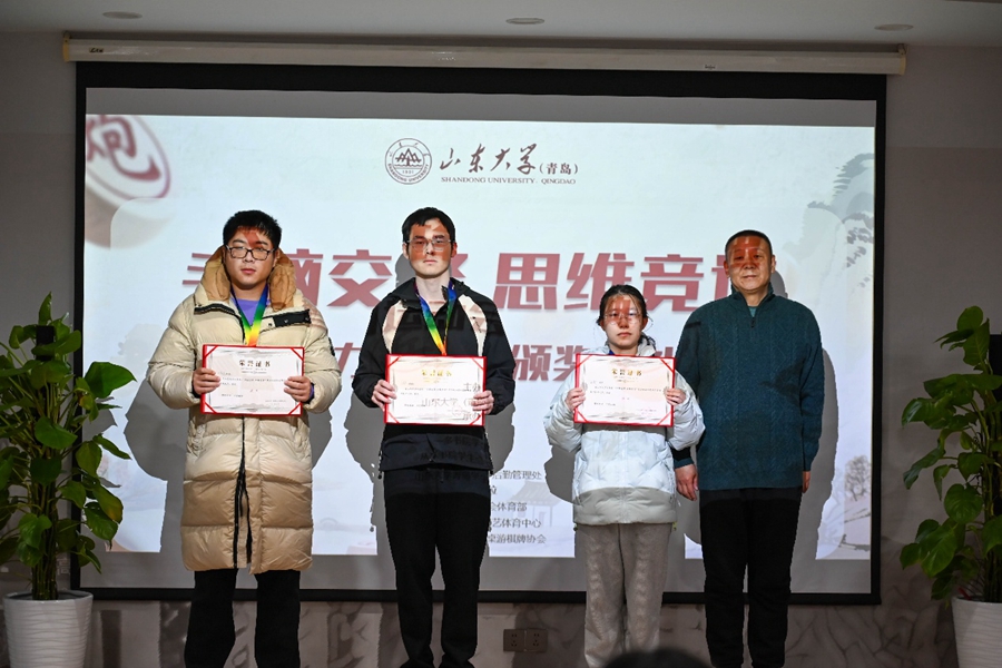 宋作标在致辞中向历经初赛、复赛脱颖而出的决赛选手表示祝贺。他结合个人经历,向大家分享了对围棋等智力运动的深刻感悟。他认为,智力运动不仅是思维的体操,是专注力、计算力、判断力与创造力的综合锤炼,更蕴含着深厚的文化底蕴与人生哲学。棋盘之上的谋篇布局、取舍之道,与学业探究、科研创新乃至人生规划皆有相通之处,有助于培养慎思明辨、坚韧沉稳的意志品质。他表示,山东大学始终致力于培养德智体美劳全面发展的时代新人,智力运动作为校园文化的重要组成部分,为同学们提供了展示智慧、切磋交流的宝贵平台。希望同学们能以此为契机,更加主动地参与到形式多样的校园文化实践中来,在知识的瀚海与思维的碰撞中不断拓展综合素质,实现全面发展。