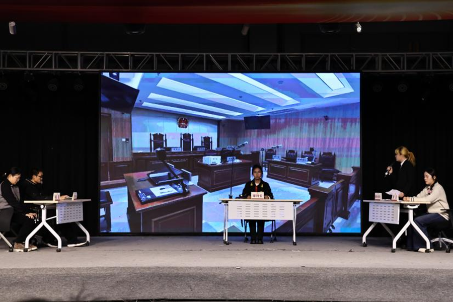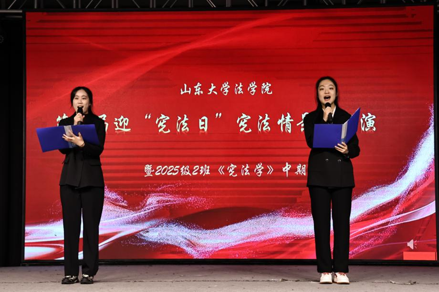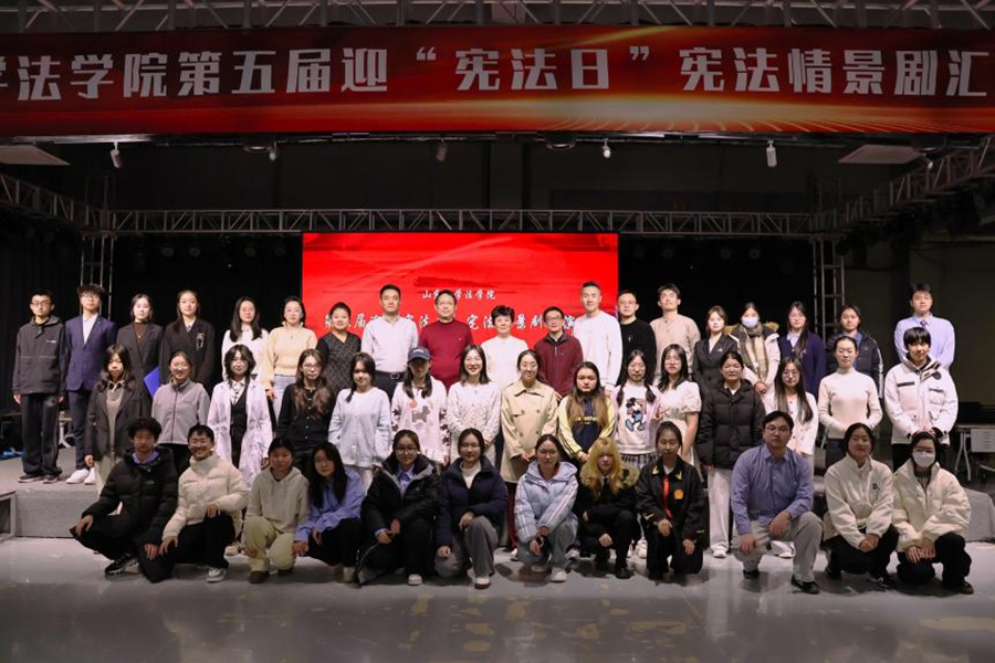 近日,法学院在青岛校区美育大课堂举办第五届宪法教育主题情景剧展演活动,将法律条文融入剧情,把宪法课堂搬进舞台。