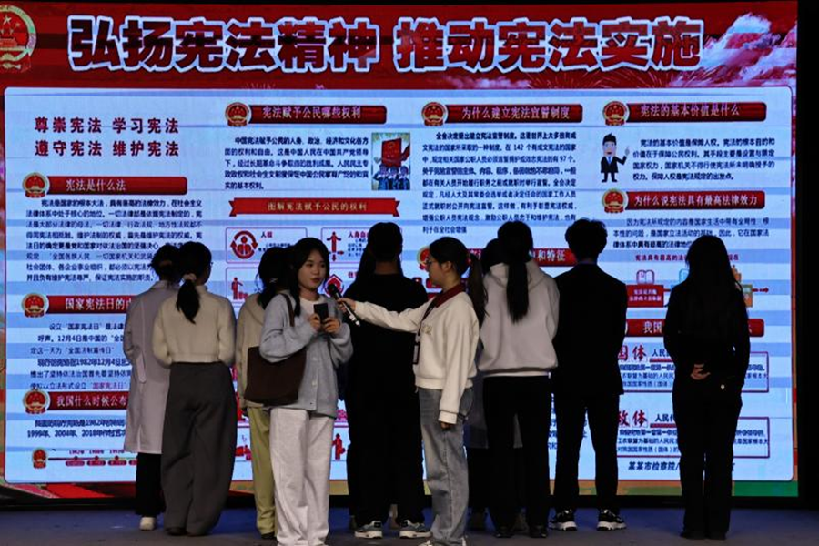 本次活动共呈现了三部学生自编自演的精彩剧目。剧目一《孙志刚案》聚焦中国法治进程中的标志性事件,再现该案推动收容遣送制度废止的故事场景,彰显宪法对公民人身自由权利的切实保障。剧目二《劳动者离线休息权案》以真实生活为背景,通过戏剧冲突展现数字时代工作与生活界限模糊的困境,引导观众思考如何依据宪法与法律维护“离线休息权”。剧目三《齐玉苓案》生动演绎受教育权作为宪法权利的神圣性,通过这一标志性案例,让观众深切感受到宪法对每位公民权利的坚实守护。