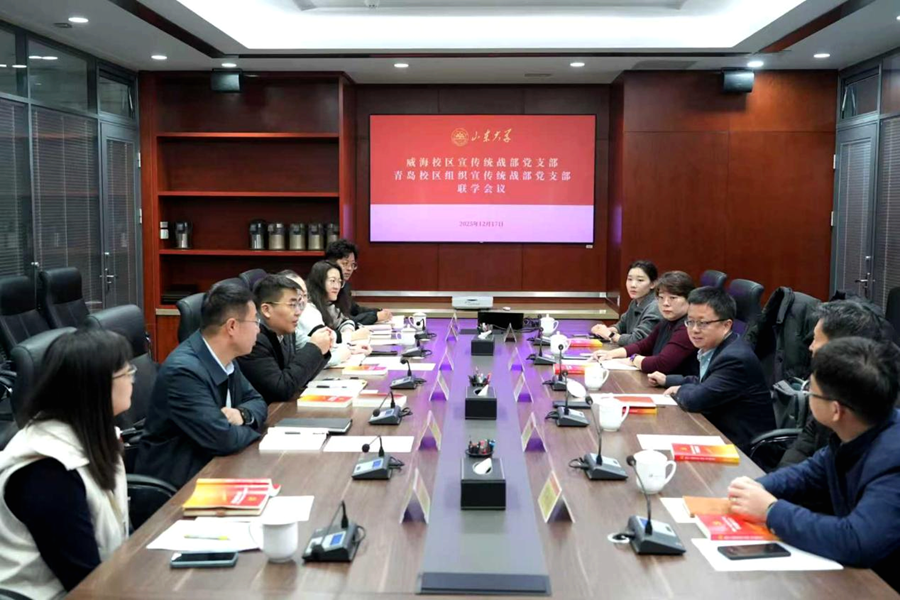 为深入学习贯彻党的二十届四中全会精神,12月17日,威海校区宣传统战部部长、教师工作办公室主任万广远带队到青岛校区开展支部联学和考察交流,青岛校区组织宣传统战部部长、机关党委书记王景瑞主持会议。