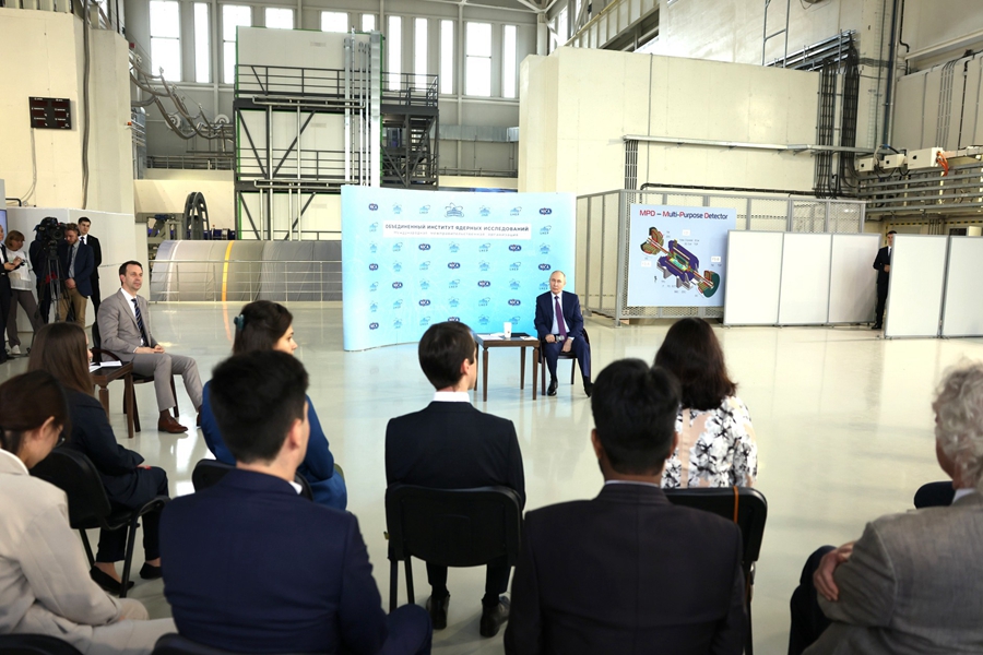 通过“山大-JINR”交替培养模式,学生可直接参与NICA对撞机上的MPD和SPD等国际合作实验,亲历国际前沿科研全过程。目前已有数名学生在学期间赴国际学术会议报告研究成果并获得好评。在此机制下,学生综合素质与创新能力显著提升,已在国际知名期刊发表多篇高水平论文,并在全国性学科竞赛中屡获佳绩。2024年,我院博士研究生王永红曾受邀参加俄总统普京在JINR与青年科学家举行的圆桌对话,获得了与普京总统及顶尖科学家交流的宝贵机会,展现了出色的科研潜力。