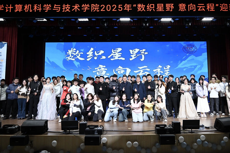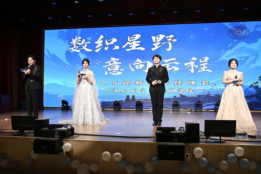 12月14日晚,计算机科学与技术学院“数织星野,意向云程”2025年迎新暨年终晚会举行。学院院长成秀珍、党委书记张四化、党委副书记王永军,与300余名师生代表一同观看晚会。