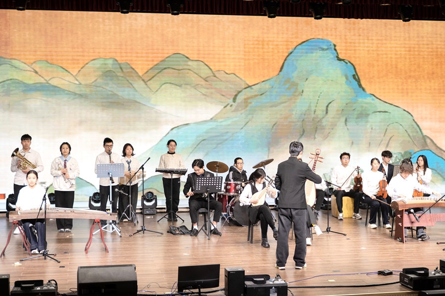 晚会以DS器乐社的节目《皎月云间之梦》拉开帷幕,他们投入的演奏如月光倾泻,西洋乐器和中国乐器的对话、现代乐器和传统乐器的碰撞,瞬间将观众带入本次晚会的意境。