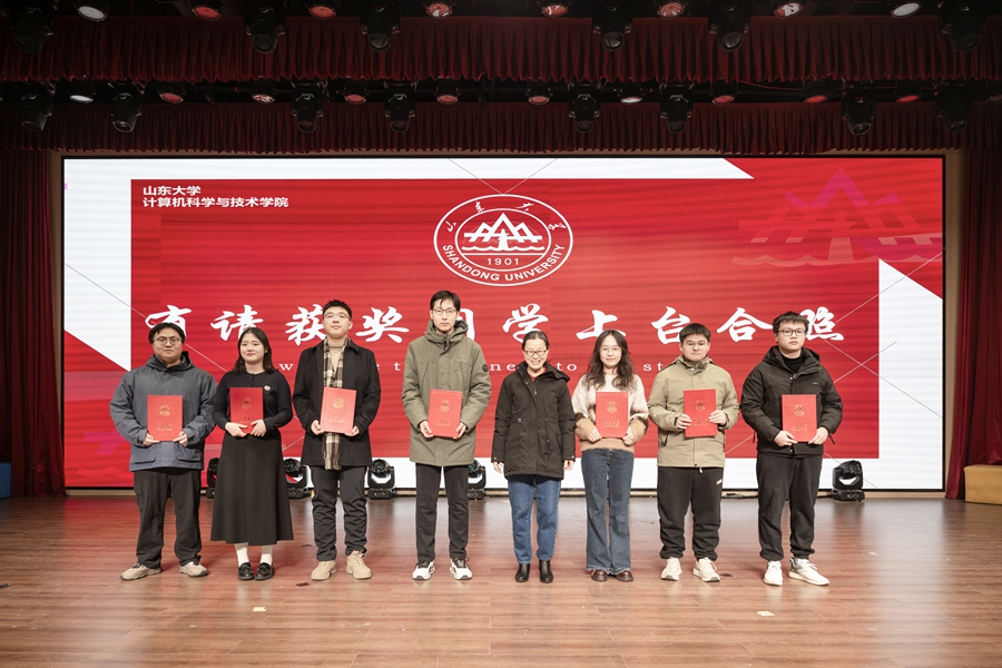 晚会首先进行2025年学院院长奖颁奖典礼,7位在学术科研、竞赛实践等领域表现卓越的获奖学生代表登台领奖。院长成秀珍逐一为获奖学生颁发获奖证书并同他们合影留念。成秀珍在致辞中对院长奖得主表达了祝贺和肯定,回顾了学院一年来的发展成果,同时表达了对广大计科学子新一年的美好祝愿和祝福。
