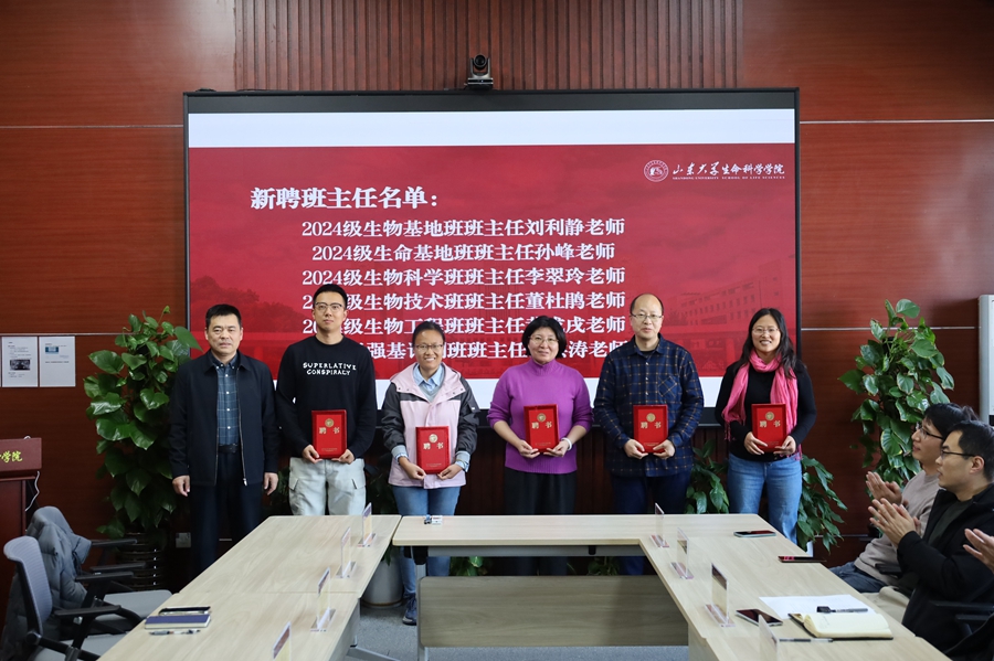 王纪磊为新聘班主任颁发聘书并作总结讲话。他表示,全体班主任要深入学习贯彻习近平总书记关于教育的重要论述,精准把握学生成长与生命科学人才培养规律,加强育人方法研究,注重多维度激发学生科研兴趣,着力培育创新素养与家国情怀,在学院基础学科拔尖人才自主培养先行先试的实践进程中,谱写团结奋进的崭新篇章。