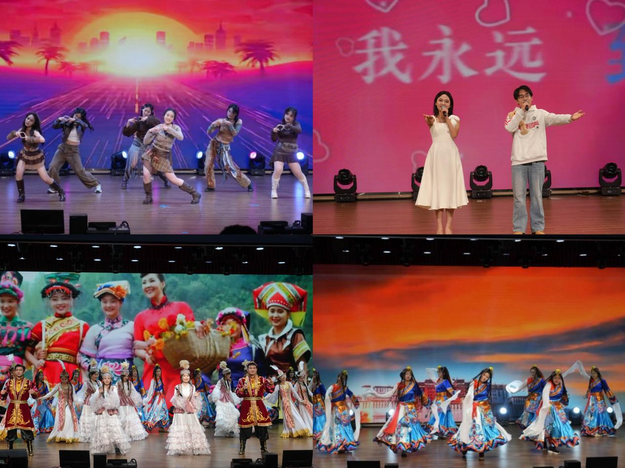 预热环节,大屏播放了来自学院领导、教师代表、辅导员、宿管阿姨、校区保安、研究生和本科生的祝福视频。晚会在活力四射的开场舞蹈《马戏之王》中正式拉开帷幕。