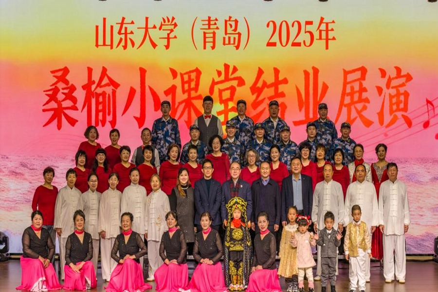 近日,“桑榆小课堂”结业展演暨夕阳红艺术团2026年元旦联欢会在双创中心报告厅举行。青岛校区党工委副书记宋作标、夕阳红艺术团团长郭邦礼参加活动。