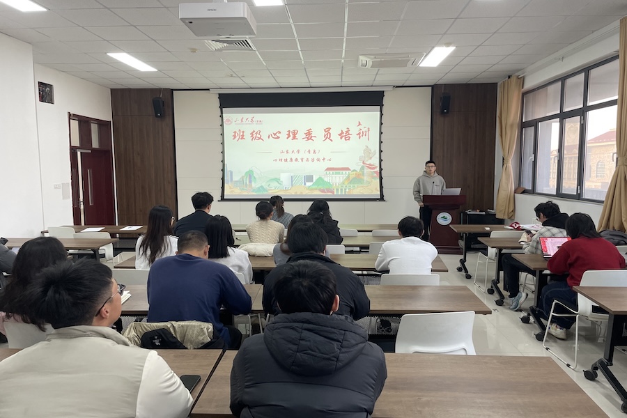 培训环节,侯强围绕心理委员的角色定位、必备知识、工作技巧及自我关怀等内容展开,重点讲解了心理健康的基本概念、常见心理问题的识别要点以及如何开展有效的心理帮助和支持等内容,帮助大家更好地掌握基础心理帮扶方法。同时,他梳理了青岛校区各类心理支持资源,为心理委员提供了丰富的后续支持与转介渠道。